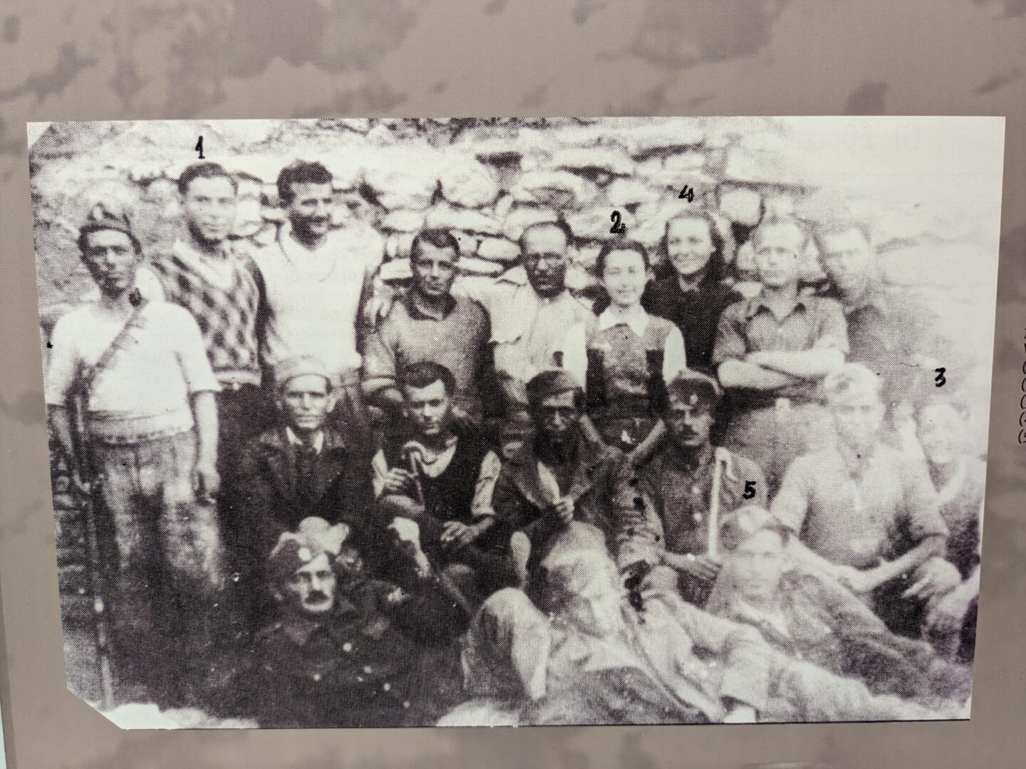 Am Abend trafen wir Anastasios Katsaros im Café Poeta, einem kollektiv betriebenen Buchladen. Anastasios Katsaros ist Lokalhistoriker, forscht und publiziert zur Geschichte des Widerstandes gegen die Besatzung und hat dazu den Film „Auf der Suche nach dem Gold der Zeit“ veröffentlicht. Er hielt einen Input über die EAM (Nationale Befreiungsfront), eine der größten Widerstandsorganisationen gegen die deutsche Besatzung. Die EAM war eine breite Bewegung, die progressive Kräfte Griechenlands von den Linksliberalen bis zu den Kommunist:innen umfasste. Mehr als 1,6 Millionen Griech:innen waren in der EAM organisiert. Sie wurde am 28. September 1941 nach der Aufteilung Griechenlands in eine italienische, bulgarische und deutsche Besatzungszone gegründet. Zusammen mit der ELAS (Partisan:innenarmee) und der EPON (Jugendorganisation) war sie von großer Bedeutung für die Befreiung Griechenlands von der Besatzung. Während der Hungersnot im Winter 1941/42 organisierte sie Essensausgaben, mobilisierte zu Demonstrationen und Streiks für höhere Löhne und Lebensmittelzuteilungen und – erfolgreich – gegen die allgemeine Arbeitspflicht. Die EAM leistete einen wichtigen Beitrag zur Rettung von Juden:Jüdinnen, unterstützte beim Verstecken, Untertauchen und bei der Flucht ins Mandatsgebiet Palästina, wofür sie mit dem links-zionistischen Dachverband der Gewerkschaften Histratut zusammenarbeitete.