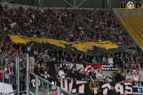 Heute nun setzte die mediale Empörung ein. So äußerte sich Dresdens Sportbürgermeister Winfried Lehmann (55) gegenüber der BILD-Zeitung mit den Worten: „Das ist unfassbar und kopflos. Eine Verunglimpfung all derer, die die Wirren des Krieges erlebt haben.“ Was war passiert? Die Fahne der Frankfurter soll, so die Boulevardzeitung weiter, eine Anspielung auf die Zerstörung der Stadt im Februar 1945 gewesen sein. Ein Meldung, die auch die Kollegen von der Sächsischen Zeitung dazu animierte, ebenfalls die Meinungen zu der eigenwilligen Interpretation des so genannten „Hetzplakates“ abzudrucken. Inzwischen ermittelt sogar der DFB-Kontrollausschuss wegen der Fahne gegen die Frankfurter Eintracht.