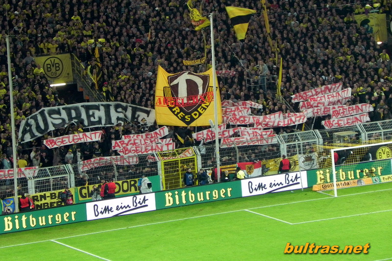 Schließlich wurde in Dortmund wieder einmal unmissverständlich klargemacht, dass es beim unvermeidlichen „Abziehen“ von Fanutensilien keine Rolle spielt, ob die Person einen Ultrahintergrund hat oder nicht. So war desöfteren zu beobachten, dass unter den Augen der auch nach dem Spiel erstaunlich untätigen Polizei kleinen Kindern mit Gewalt die Schals weggenommen wurden. Ein Verhalten, welches sich auch mit szenetypischen Verhaltensregeln nicht erklären lässt und schon im Vorfeld durch die Fangemeinschaft von Dynamo kritisiert worden war.