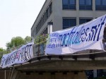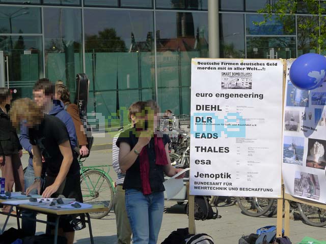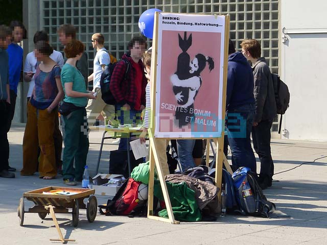 Gestern haben Studierende wie schon im vergangenen Jahr mit einer Kundgebung gegen die Beteiligung von Rüstungsfirmen an der 21. bonding Firmenkontaktmesse protestiert. Auch in diesem Jahr präsentieren sich Firmen wie EADS und Diehl aber auch das Bundesamt für Wehrtechnik und Beschaffung den zahlreichen interessierten Studentinnen und Studenten als attraktive Arbeitgeber. Bei der zweitägigen Messe haben Studierende die Möglichkeit, sich über mehr als 150 Unternehmen zu informieren und mit den Firmen in Kontakt zu treten. Motto der Veranstaltung in diesem Jahr ist „Rock deine Karriere“.