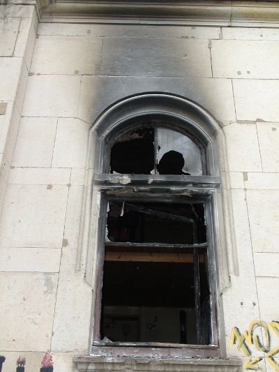 Der Brandanschlag am 19. August ist jedoch der Höhepunkt und stellt eine neue Qualität rechter Aktivitäten dar. Der oder die Täter legten den Brand gegen 3 Uhr morgens am Fenster eines Zimmers im Erdgeschoss. Glücklicherweise schlief in dieser Nacht niemand in dem Raum. Aufgrund der rasanten Feuer- und Rauchentwicklung wäre ein Entkommen nur schwer möglich gewesen.