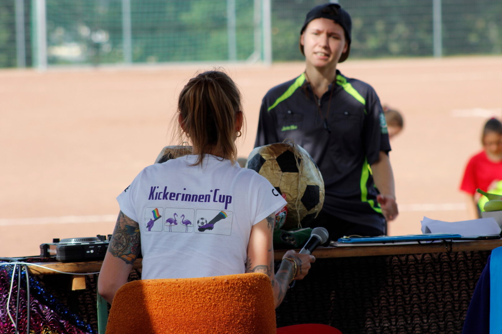 Trotz der solidarischen und schönen Atmosphäre der Veranstaltung, ging es im Gespräch mit den Veranstalterinnen nicht nur um positive Sachen. Bis heute ist Fußball immer noch ein männlich dominierter Sport, bei dem sich Frauen häufig Vorurteilen ausgesetzt sehen. So gestaltet es sich laut Veranstalter:innen für Frauen immer noch schwer, einen Zugang zum Sport zu erhalten. Um das zu ändern, gab es schon im Vorfeld des Turniers ein „How to Kick“ im Alaunpark, der interessierten FLINT-Personen die Möglichkeit gab, sich in einem entspannten Rahmen am runden Leder auszuprobieren, Regeln und Taktiken zu erlernen. Die große Resonanz darauf war auch einer der Gründe, schließlich das Turnier im Norden der Stadt zu organisieren, berichteten uns die Veranstalterinnen. Spielerinnen des „How to Kick“ traten dann auch mit einem eigenen Team an und erlangten in der „Zauberfüße“-Gruppe den dritten Platz.